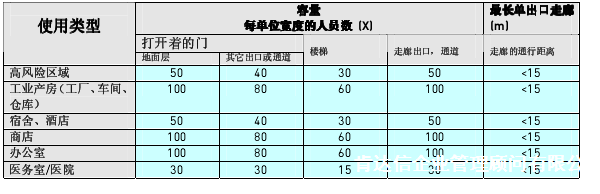 裝置的不同危險(xiǎn)等級(jí)的建筑、操作區(qū)域及設(shè)施的通行距離的要求。表 2.4 表示通行距離、出口容量和位于