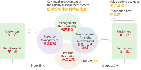 ISO9001:2000基于過程的質量管理體系模式 ISO9001:2000采用了P(策劃)-D(實施)-C(檢查)-A(改進)的過程管理模式,提高了與環境管理體系等其它標準的兼容性,為建立其它管理體系提供了基礎和條件。 |