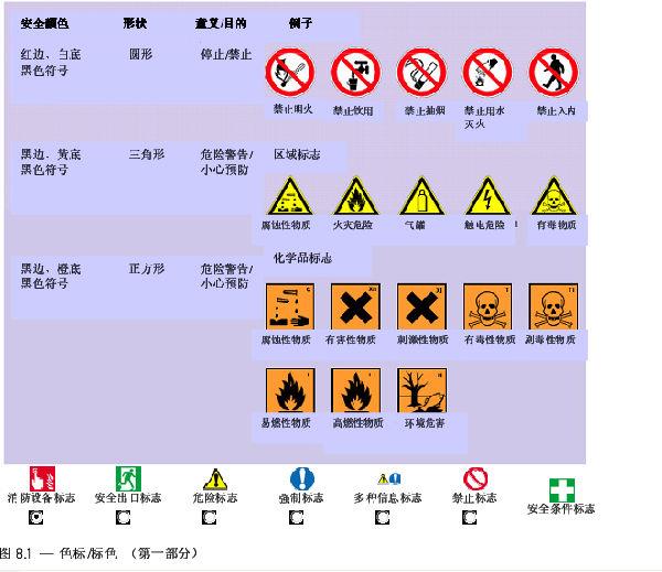 本章提供了工廠被要求張貼的不同安全標(biāo)志的圖文說(shuō)明。同時(shí)也提供了適當(dāng)?shù)臉?biāo)志結(jié)構(gòu)以及維持其作為與員工交流模式的有效措施的指引。任何標(biāo)志包括措辭應(yīng)使用合適員工的語(yǔ)言。以下的預(yù)防措施及標(biāo)準(zhǔn)應(yīng)適用: